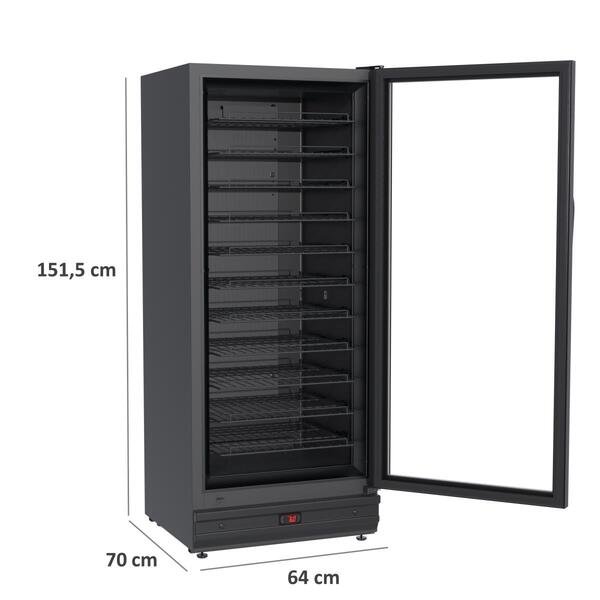 Com acabamento em preto fosco, design moderno e sofisticado, oferece alta capacidade de armazenamento, porta com vidro temperado, prateleiras resistentes e funcionamento eficiente. Indicada para uso residencial avançado ou semiprofissional, preserva o aroma, sabor e qualidade dos vinhos.