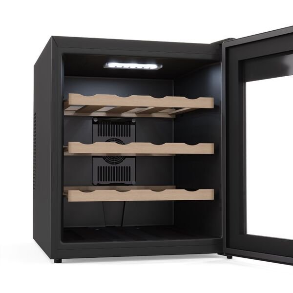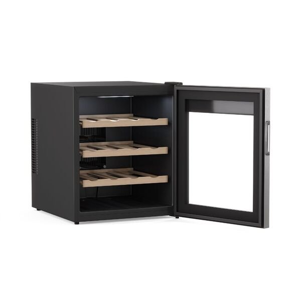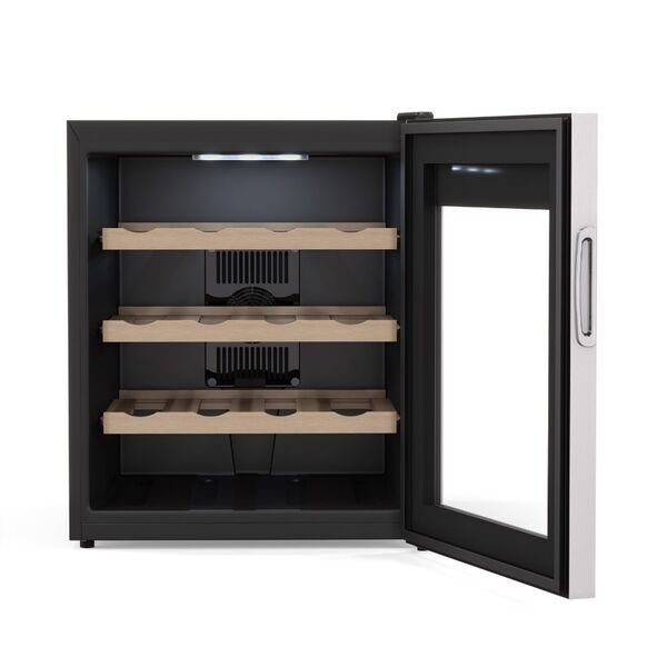 Compacta e elegante, possui acabamento em inox, porta com vidro temperado, prateleiras ajustáveis e funcionamento silencioso. O sistema bivolt permite flexibilidade de instalação em diferentes locais, garantindo praticidade, sofisticação e preservação da qualidade dos vinhos.
