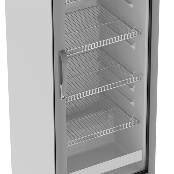 Seu sistema de refrigeração garante temperatura estável para latas, garrafas e bebidas em geral, aliando baixo consumo, robustez e design clean na cor branca, que se adapta facilmente a diferentes ambientes comerciais.