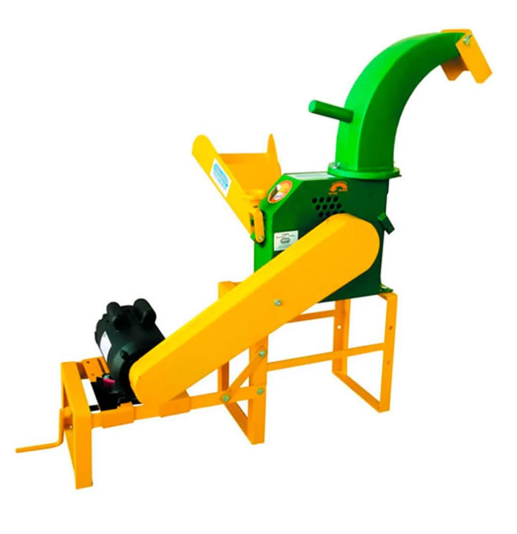 Picador forrageiro Maqtron M-600 com motor elétrico 3 CV 220 V, ideal para picar capim-elefante, cana e mandioca. Produção média de 800–900 kg/h (capim) ou 1.900–2.100 kg/h (cana/mandioca). Equipada com 3 navalhas, polia 2 VA 95 mm, rotação de 2.800 RPM. Inclui motor, polia, correia e chave de acionamento. Peso leve e estrutura compacta, adequadas para uso em pequenas e médias propriedades.