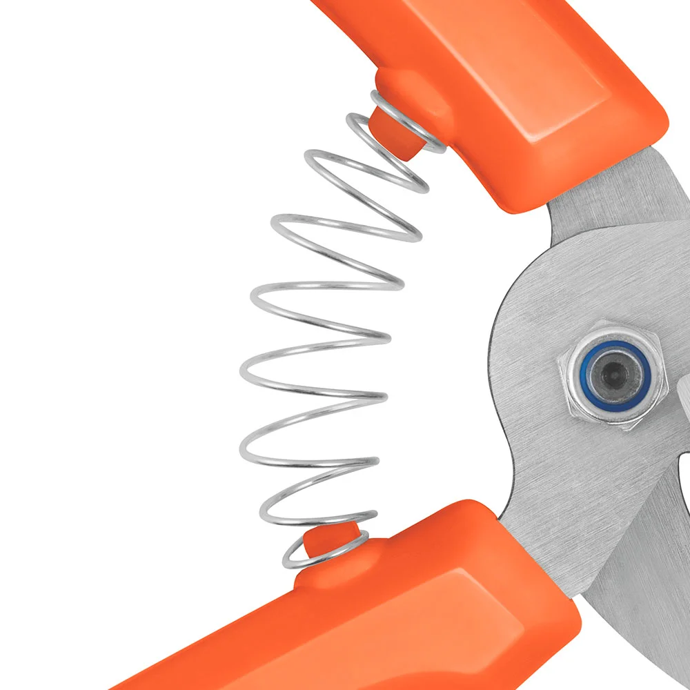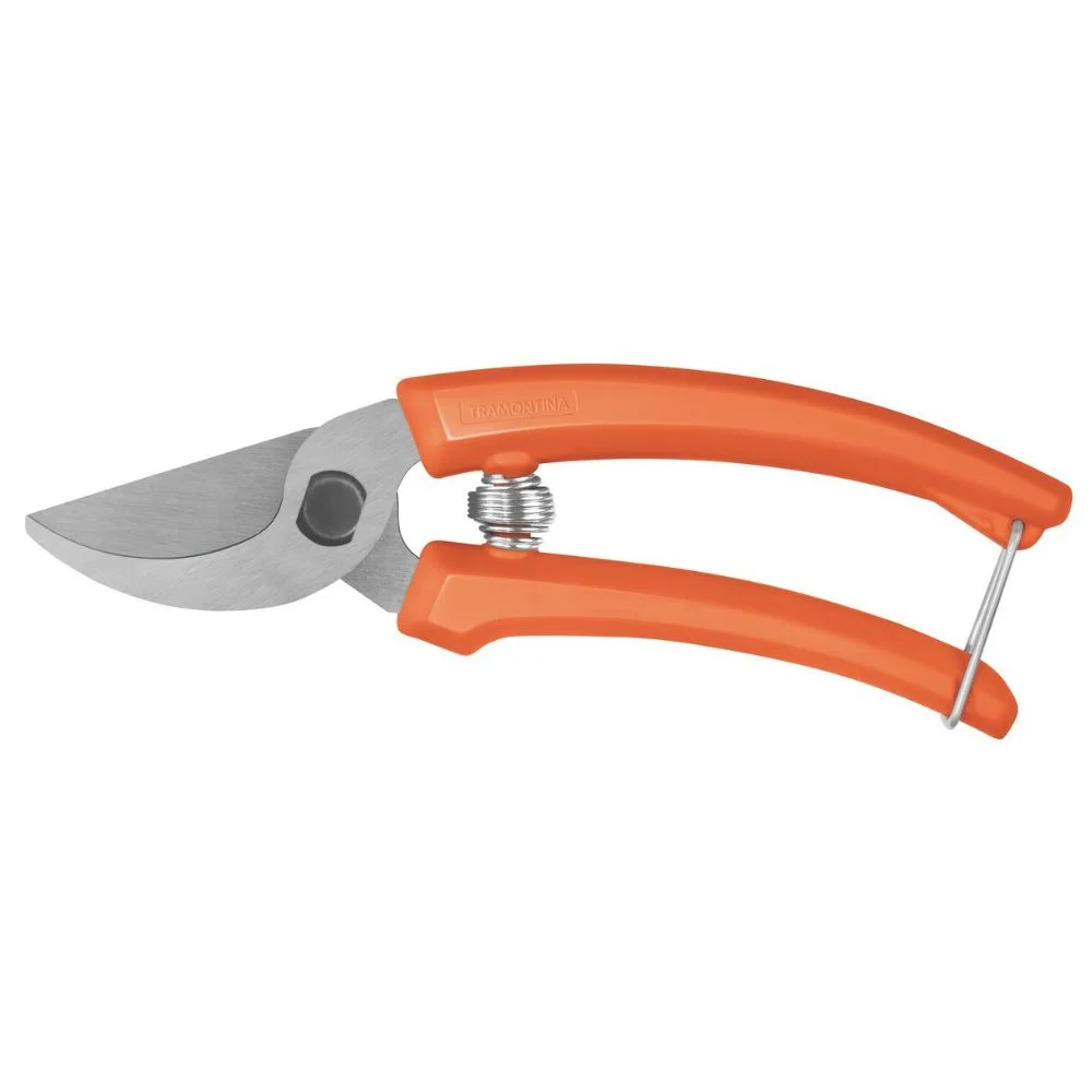 Tesoura de poda da marca Tramontina, modelo 78300001, com lâmina de aço carbono temperado e cabo plástico ergonômico. Ideal para poda de arbustos, plantas ornamentais, flores e frutíferas. Possui lâmina tipo Bypass com corte preciso e limpo de galhos verdes de até 17 mm de diâmetro. Compacta, leve e confortável para uso doméstico.